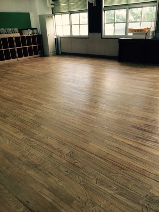 そして綺麗になった教室には、教員が床のワックスがけを行っています。