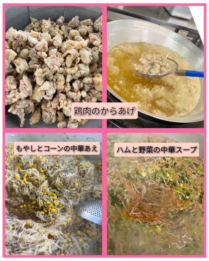 給食室の大きな釜でカラっと揚がった鶏肉は、しょうがとにんにくのスパイスが良く効き完食となりました。