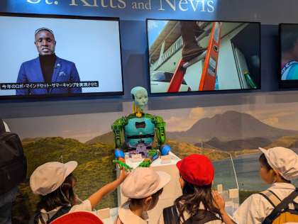 セントクリストファーネービスのブースではロボットが待っていました。