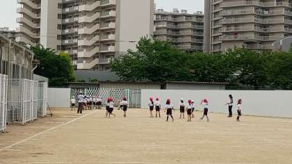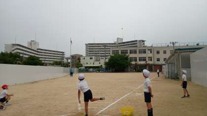 運動場ではソフトボール投げが行われていました。1年生では10mも難しいところですが、6年生の中には50mを超す児童もいました。