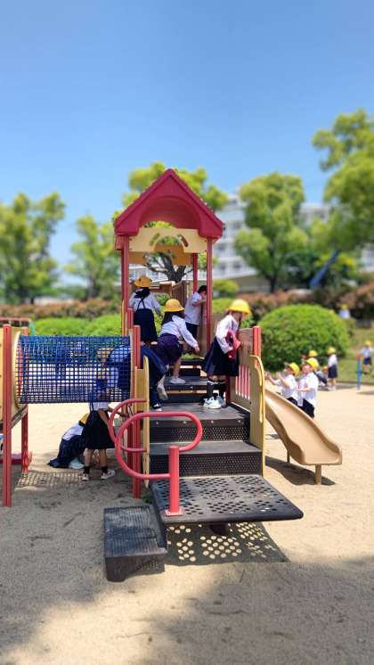 遊具で遊んだり、茂みの小道を探検したり、おもいおもいに楽しく遊びました。