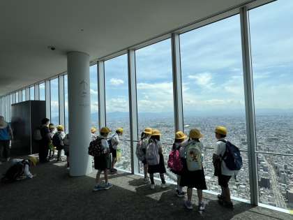 ハルカス展望台です。エレベーターが開いた瞬間、窓にへばりつく子もいました。