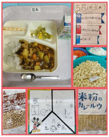 米粉のカレールウの素を使用して、やさしい味に仕上がり、おいしくいただきました!