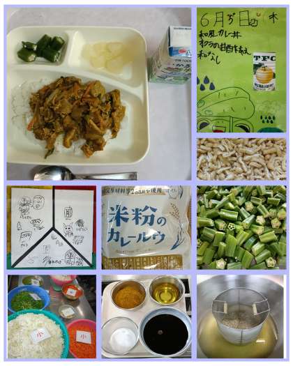 『和風カレー丼』は、けずりぶしのだしの風味をきかせた和風カレーをご飯にかけて食べる児童に大好評な献立です!
