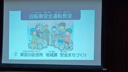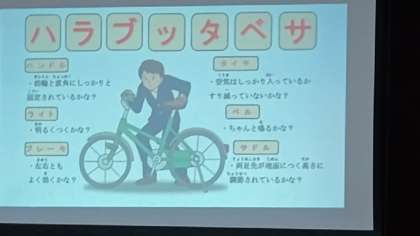 東淀川区役所の方に来ていただいて、自転車安全運転教室が行われました。生活の中で、自転車はよく使います。今日教えていただいたことを忘れず、安全に自転車に乗りましょう。