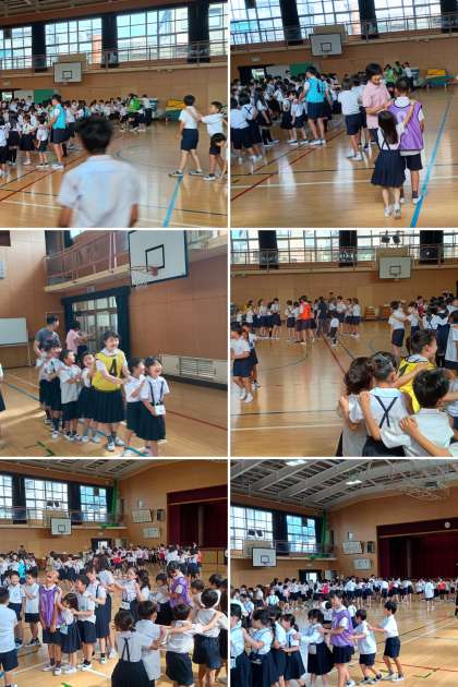 児童集会で「じゃんけん列車」を行いました。どんどん勝ち進んだところには、長〜い列車ができあがっていました♪