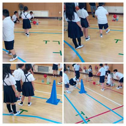 今日の昼休みから、運動委員会が企画しているスポーツチャレンジが行われています。今回はペットボトルのピンを倒すボーリングです。今週・来週・再来週の火・水で全学年実施予定です。今日は2年生が楽しんでいました。