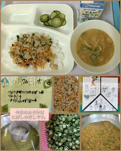 大阪市の学校給食では、さば節と煮干しの混合けずりぶし、昆布、かつお節、煮干し、干ししいたけなどを出汁として使用しています。
