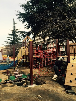 子どもたちも様子が変わっていることに気づき、フェンス越しに眺める姿が見られます。
