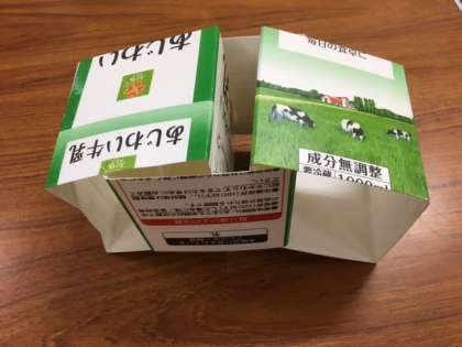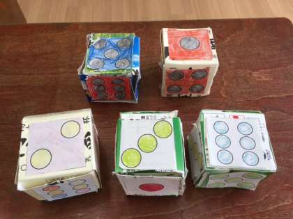 4年生では、図工の時間に使用済みの牛乳パックでサイコロをつくりました。