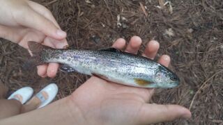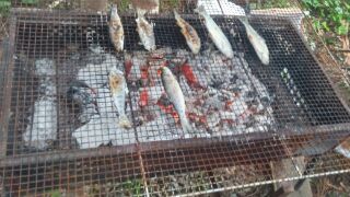 魚の素早さと手触りに悪戦苦闘しながらの魚つかみ。苦労した甲斐あって、焼いて食べたニジマスは格別だったようです。