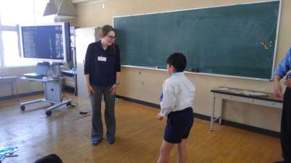 大きな声で自己紹介できる子どもたちだったので、授業の後、クレア先生は
