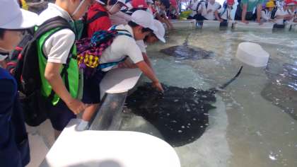 ふれあいコーナーでは、サメやエイに初めてさわりました。