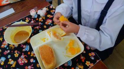 おかわりをする児童も多く、残食はゼロ。みんなしっかり食べていました。