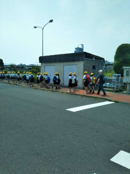 学校でお弁当を食べてから、柴島浄水場に出発しました。