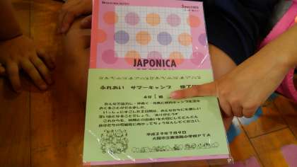 さらに、子どもたち一人一人に、修了証と記念のノートをプレゼントしていただきました。