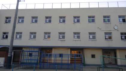決まったスローガンは、児童会のメンバーが手分けをして、一文字ずつ書いて、運動場に面した窓に貼ってくれています。