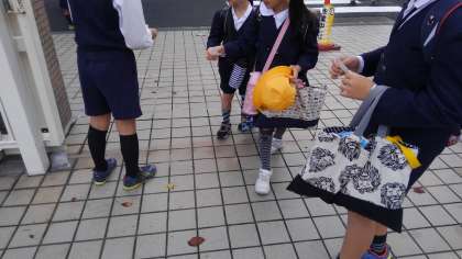 今日から毎朝の登校時間に、後期の代表委員の児童が、正門と西門の2か所に立って元気にあいさつをしながら、文字が書いてある紙を渡しています。