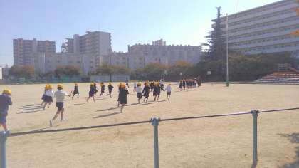 「お(押さない)は(校舎の中は走らない)し(しゃべらない)」の約束をしっかりと守って避難できました。