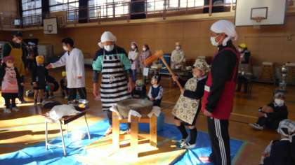 今日は、子どもたちが楽しみにしていた「もちつき大会」です。