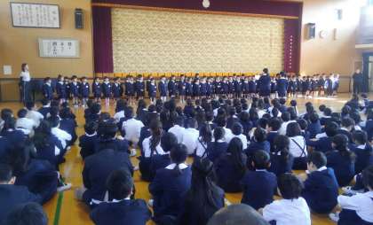 1時間目に、1年生と2〜6年生とが初めて顔を合わせる対面式を行いました。