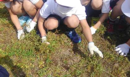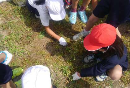 理科の学習で、種を植えられるよう、学年のみんなで学習園の草抜きをしました。