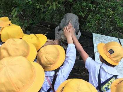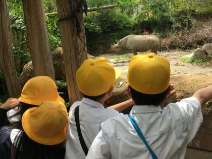 大きなサイは大迫力!サイの骨にも触ることができました。