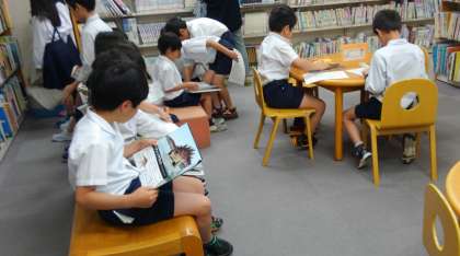 社会科の町たんけんの続きで、学校のすぐそばにある東淀川図書館に行きました。