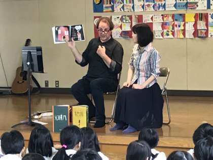 ベルギーの絵本作家 ワリー・デ・ドンケルさんと、作家で翻訳家の野坂 悦子さんが来校され、5年生と交流会をしました。