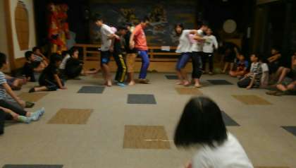 お腹いっぱい食べた後は、楽しいアトラクションで盛り上がっています!