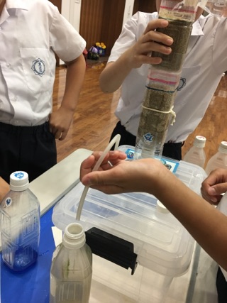 館内でも、淀川の水をきれいにする過程がわかりやすくまとめられたDVDを見たり、淀川の水から汚れや匂いを取る実験をしたり、楽しみながら知識を得ることができました。