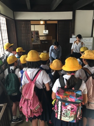 スタッフの方から重要文化財であることの大切さについてお話しいただき、靴を脱いで靴箱へいれる手順から教えていただきました。