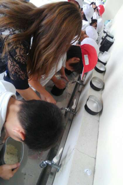 飯ごう班は、一粒もお米をこぼさないように、緊張しながらお米をとぎます。「あっ、こぼしちゃった!」そんなことも、大切な経験です。