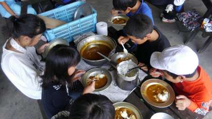 「めっちゃ辛い!」と言いながらも、頑張って作った自分たちの班のカレーが「一番おいしい!」と、何度もお代わりをしていました。