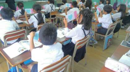 今日は3年2組で、研究授業を行いました。「まどガラスと魚」という読み物資料請求をつかった授業です。