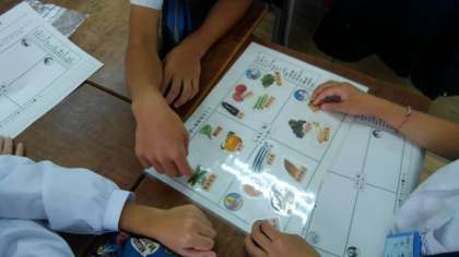 他にも、大根やトマト、ほうれん草等の食べ物の旬を考える「旬の食材カレンダー」をグループで作りました。ほうれん草が夏の野菜だと思っていた人が多く、冬の野菜だと知って驚いている人がたくさんいました。