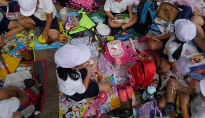 「先生、見て。」と、くまの形のおにぎりや、大好物のウインナーなど、おうちの人が作ってくれたお弁当を嬉しそうに見せてくれました。