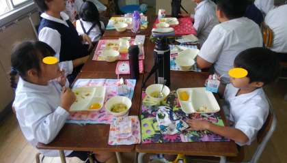 他の学年の人も、学年が違う人と、給食のときの約束事がちがうことなどについて、いろいろと話をしながら、楽しそうに食べていました。