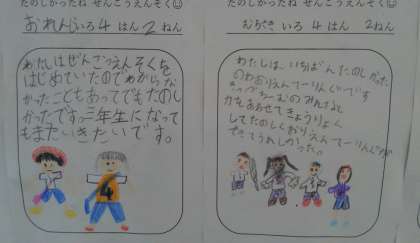 10月23日(火) 全校遠足の感想を書いたイラストを掲示しています。