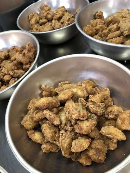 また、フリッターの衣には、「アオサ」も入っていて、ほのかに磯の香りがしました。カリっと揚がっているのに、白身は柔らかくて、とても美味しかったです。