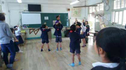 けん玉は、7段の腕前の先生が、「けん玉を頭にのせて、ユニコーンになろう。」と、けん玉のバランスの取り方や扱い方などを教えて下さいました。