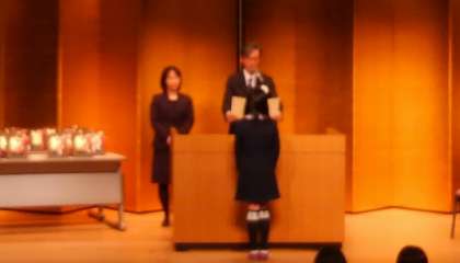 授賞式では、家族の皆さんと担任の先生が見守る中、一人ずつ名前を呼ばれ、壇上に立った辻本さんは、堂々とした姿で、中央図書館長より賞状を受け取っていました。