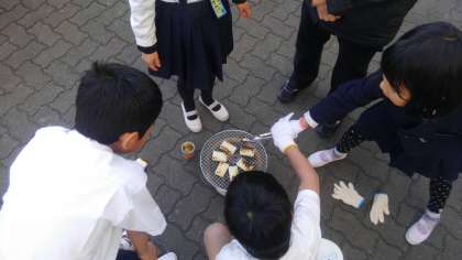 頃合いを見て、お餅を焼きました。自分のお餅を大切そうにひっくり返しながら、おいしそうに焼き上げました。