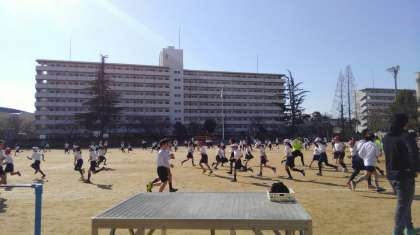 よいお天気の月曜日、今日から業間かけ足が始まりました。寒さから外に出ることも億劫になりがちですが、寒さに負けない強い体と心を作るため、目標を立ててチャレンジします。