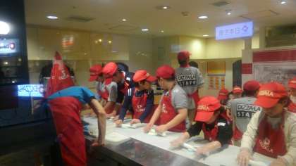 やはり、ピザやすしなどのフード店は人気で、予約をしないとなかなか体験できません。