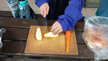 カレー作りがはじまりました。どの班も手際よく進めています。