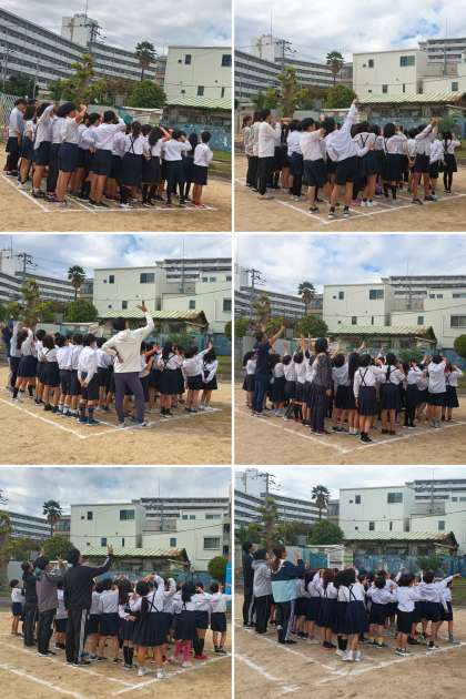 創立100周年を記念して、集合写真を撮影しました。まずは全校児童と教職員での全体写真を撮り、その後、各学年ごとの撮影を行いました。