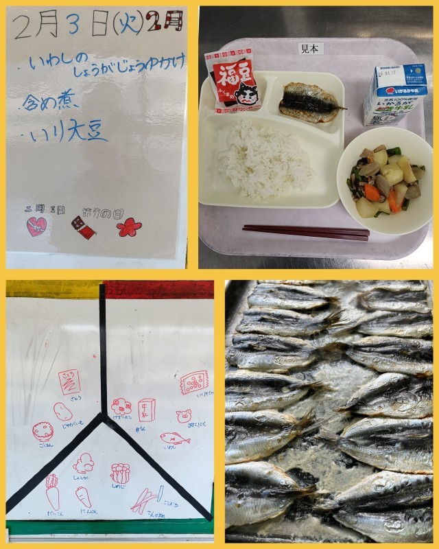「いわしのしょうがじょうゆかけ」は、開きのいわしを焼き物機で焼き、しょうが風味をきかせたタレをかけました。