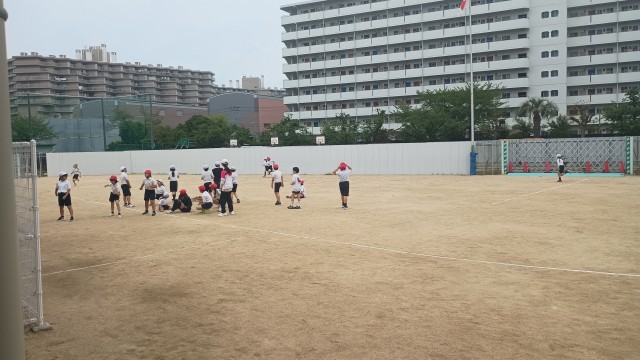 運動場から元気な歓声が聞こえてきたので目を向けてみると、5年生がリレーの練習をしていました。
