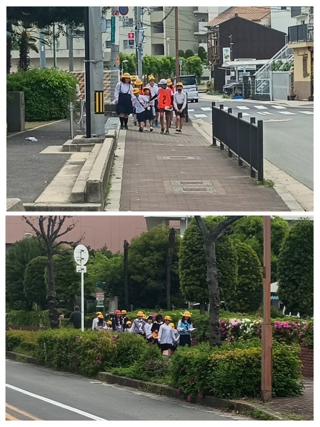 1年生と6年生のグループで、通学路の安全な歩き方を確認しました。